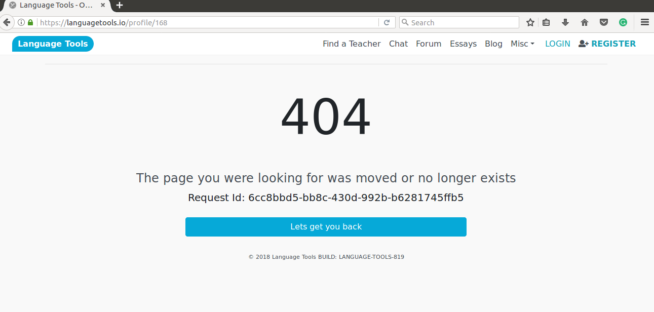 Whenever I try to view my profile it throws me 404 error. Please find below screenshot for the error.