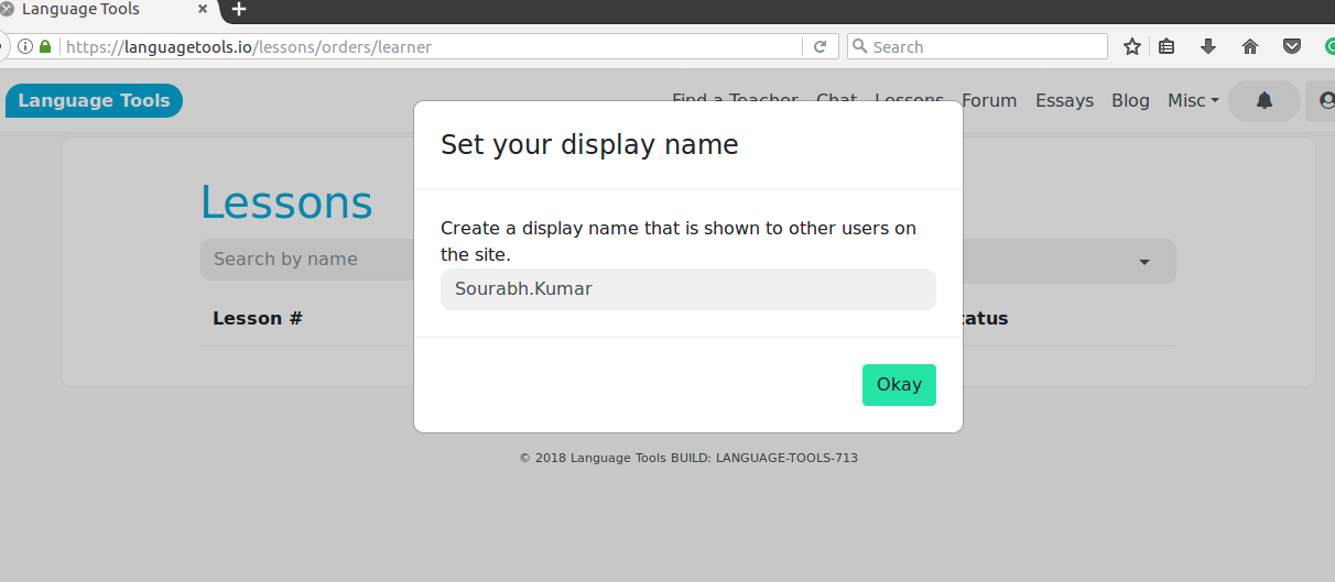 I have set my display name. But the pop up for setting display name is keep on coming on every page to set my display name. Please find the attached screen-shot for reference.