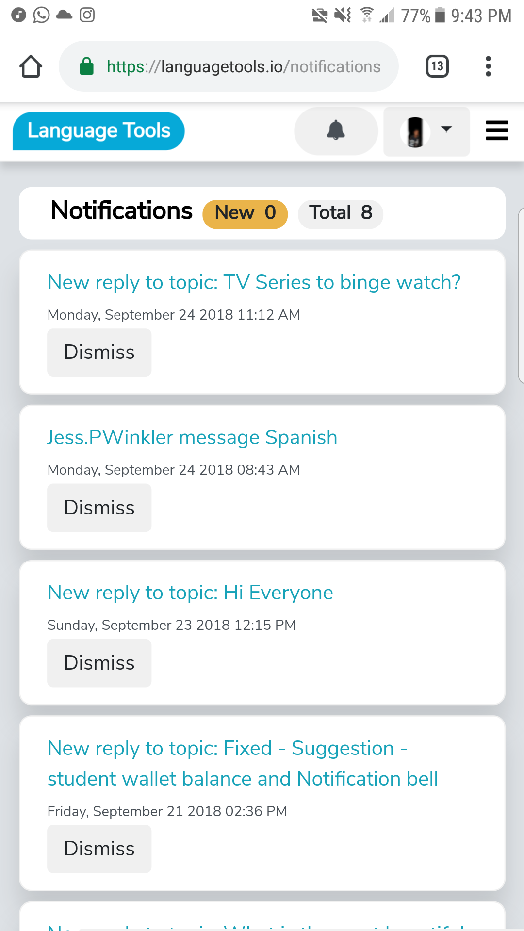 I have two screenshots attached using the Google chrome browser on an Android phone. The suggestions I have with the first screenshot is that new notifications could be in a new tab all together instead of everything being merged into one panel.