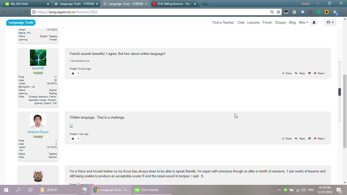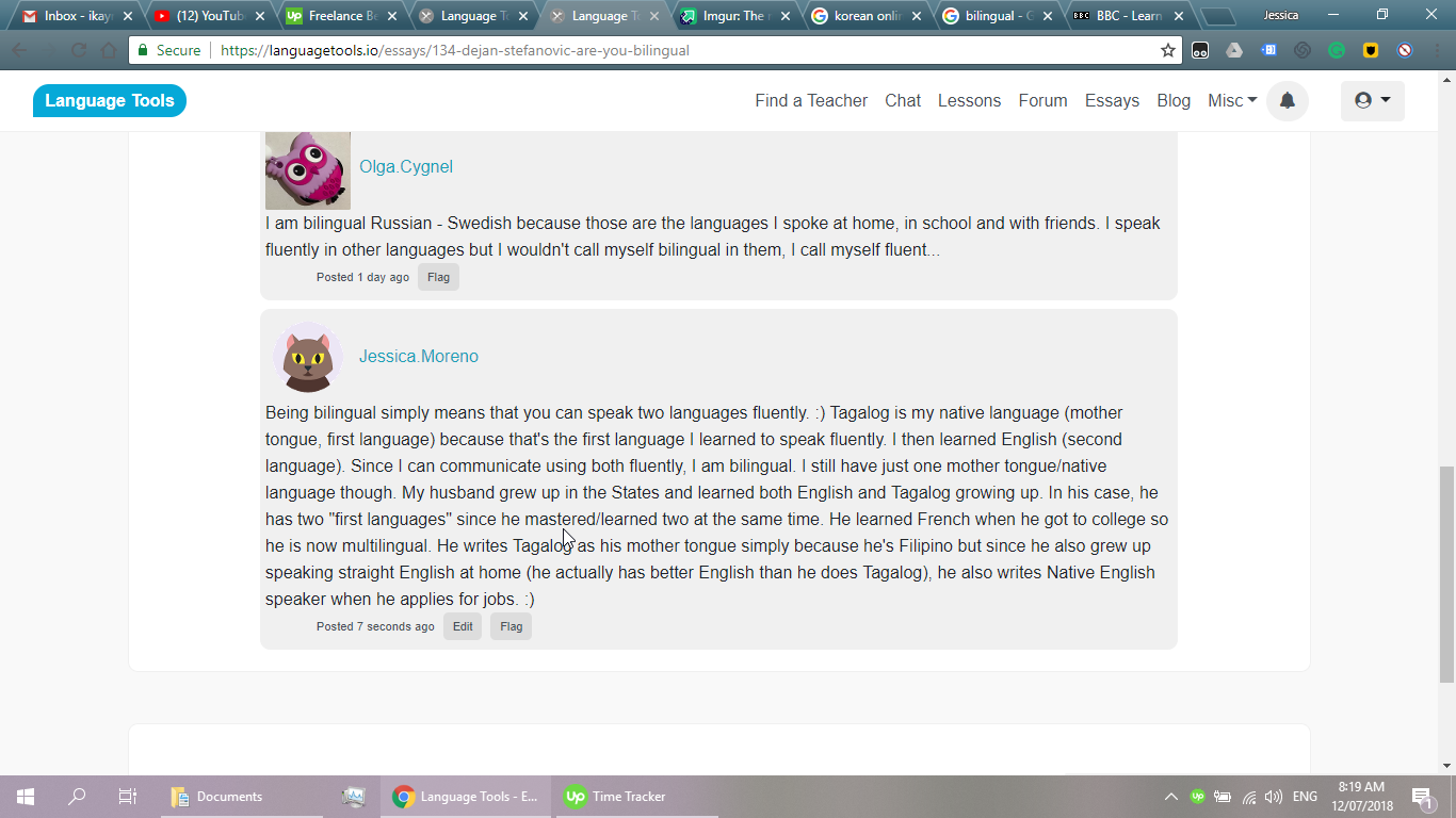 Hi! I'm from the Philippines. :) I speak two languages fluently -- English and Tagalog. I used to teach ESL to Koreans so I can read and write in Hangul. I also tried learning French and failed miserably. :)