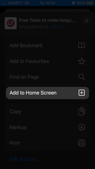 4. Select the option Add to Home Screen