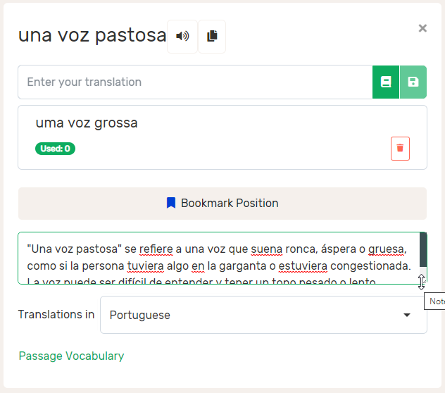 When you say "notes", do you mean "translations"? Because there is another field for notes lower down.